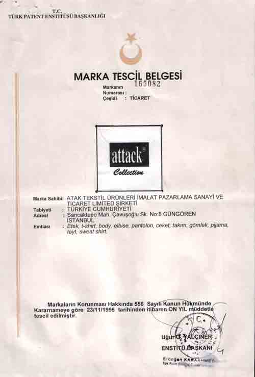 Our Registered Trade MarkAtak Textile According to the decree No. 556 the force of law on the protection of brands from the date the document was registered in a period of YEARS ON.